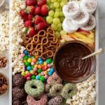 This dessert board is a vibrant and festive assortment of themed snacks perfect for parties and gatherings. Featuring holiday or themed sugar cookies, brownie bites, chocolate-dipped pretzels, assorted chocolates, fresh fruits, and sweet dips, this no-cook dessert board offers a delightful variety of flavors and textures arranged beautifully on a wooden board or platter.