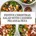 A festive and vibrant Christmas Salad featuring roasted butternut squash, crisp Honeycrisp apples, pomegranate seeds, crumbled feta cheese, and sweetly spiced candied pecans, all tossed together with a tangy honey-Dijon dressing. This salad balances sweet, savory, and tart flavors, perfect as a holiday side or light main.