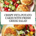 Delicious and nutritious feta cakes made with tender mashed potatoes, fresh herbs, and crumbled feta, baked to golden perfection. Served alongside a vibrant Greek salad of tomatoes, cucumber, red onion, Kalamata olives, and a zesty lemon dressing, this recipe is a perfect light meal or appetizer with Mediterranean flavors.
