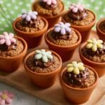 These flowerpot chocolate chip muffins are a playful and delicious treat, baked right inside mini terracotta pots. Topped with melted chocolate, sprinkles, and delicate wafer daisies, they make a charming dessert perfect for parties or a special snack.