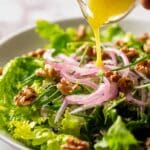 This French Bistro Salad is a fresh and vibrant mix of tender lettuce varieties, aromatic fresh herbs, crunchy toasted walnuts, and tangy quick-pickled eschalots, all brought together with a bright, sweet and tangy vinaigrette. It’s a light, elegant salad perfect for a starter or side dish that balances herbaceous flavors and crunch with a zesty dressing.