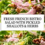 Keywords: French salad, bistro salad, quick pickled shallots, fresh herb salad, walnut salad, vinaigrette dressing