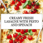 This fresh lasagne with pesto is a vibrant twist on a classic favorite, combining creamy sauce, fresh spinach, juicy cherry tomatoes, and aromatic basil. It’s perfect for a comforting meal that feels both indulgent and light.