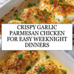 This Garlic Parmesan Chicken recipe is a flavorful and easy weeknight dinner option featuring tender chicken pieces coated in a seasoned breading, pan-fried to golden perfection, and tossed in a rich garlic Parmesan sauce. Perfect served over pasta, rice, or mashed potatoes, it combines crispy textures with creamy, cheesy flavors for a satisfying meal.