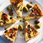 - Serve: Once cooled slightly, remove the tart from the tin and cut into slices. Serve at room temperature or gently reheated. Garnish with caper berries if desired for an added burst of flavor.