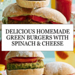 Keywords: green burgers, vegetarian burgers, spinach burgers, cheesy spinach patties, homemade veggie burgers, healthy burger recipe, meatless burger