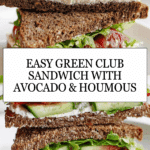 Keywords: green club sandwich, avocado sandwich, houmous sandwich, vegetarian lunch, healthy sandwich, wholegrain toast sandwich