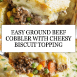 This Ground Beef Cobbler is a comforting and hearty casserole combining savory browned ground beef, mixed vegetables, and creamy broth, all topped with a fluffy cheddar bay biscuit crust. Perfect for a family dinner, this easy-to-make dish bakes to golden perfection with bubbling edges and a lightly browned biscuit topping.