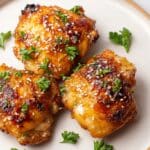 This Honey Garlic Chicken Thighs recipe features tender, bone-in chicken cooked to crispy perfection with a sweet and savory honey garlic glaze. Seared on the stovetop and finished in the oven, the flavorful glaze caramelizes beautifully, making this an easy yet impressive meal perfect for any day of the week.