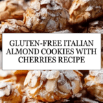 These Italian Almond Cookies, known as Ricciarelli, are a delightful gluten-free treat featuring almond meal, dried cherries, and a sweet honey-egg white meringue base. Coated in flaked almonds and baked until golden, these chewy cookies offer a delicate almond flavor with a hint of lemon zest and natural almond extract. Perfect for special occasions or as an elegant everyday snack.
