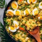 - Serve: Spoon the kedgeree onto a large serving platter or individual plates. Top with halved or quartered hard boiled eggs and garnish with the remaining coriander leaves. Serve immediately and enjoy!