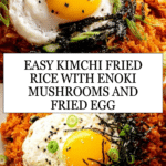 Kimchi Fried Rice is a flavorful Korean dish that combines tangy, spicy kimchi with savory gochujang and tender enoki mushrooms, all stir-fried with day-old rice for the perfect texture. Topped with a runny fried egg, black sesame seeds, green onions, and crispy seaweed strips, this recipe offers a delicious and comforting meal that’s quick to prepare.