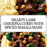 A hearty and flavorful lamb curry slow-simmered with chickpeas and spinach, paired perfectly with a creamy masala-infused mashed potato side. This comforting dish combines tender stewed lamb with aromatic spices and a touch of yogurt for richness, ideal for a satisfying meal.