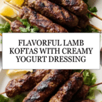 Keywords: lamb kofta, grilled kofta, yogurt dressing, Middle Eastern lamb, lamb skewers, spiced lamb, flatbread meal, healthy lamb recipe