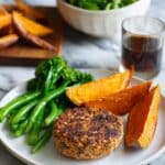 Lean Turkey Burger with Sweet Potato Wedges and Green Vegetables Recipe