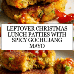 Keywords: leftover patties, Christmas leftovers, gochujang mayo, leftover turkey recipe, crispy patties, fusion snack