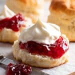 - Serve: Serve the scones warm with generous amounts of whipped cream and jam, perfect with a cup of tea.