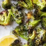 Keywords: roasted broccoli, garlic broccoli, lemon broccoli, parmesan broccoli, healthy side dish, vegetarian side, easy broccoli recipe
