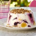 Keywords: Mango dessert, Frozen dessert, Fruit bombe, Lime, Blackberry, Summer dessert, No-bake dessert