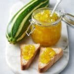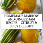 Keywords: marrow jam, ginger jam, lemon jam, homemade preserves, British preserves, stovetop jam, easy jam recipe, fruit jam