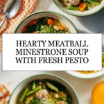 Meatball minestrone with pesto is a hearty and comforting twist on the classic Italian soup. Packed with tender beef meatballs, vegetables, beans, and pasta, it’s perfect for a satisfying family meal. The fresh pesto and basil add a vibrant finish that brings the flavors together beautifully.