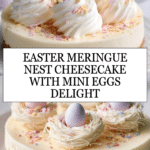 This delightful Meringue Nest Cheesecake with Mini Eggs is a no-bake, refreshing dessert perfect for spring celebrations or any festive occasion. Featuring a crunchy chocolate digestive biscuit base, a creamy lemon-infused cheesecake filling, topped with crisp meringue nests, toasted coconut flakes, colorful mini eggs, and festive decorations, it combines textures and flavors beautifully. Easy to prepare and chill, it’s a crowd-pleasing centerpiece that’s as charming as it is delicious.