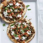 - Assemble and Grill: Spread the lamb mixture evenly over each flatbread. Place the tray under the grill and cook for 2-3 minutes, until the flatbreads are warmed through and slightly crisp.