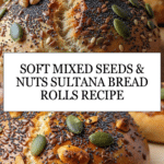 This Mixed Seeds & Nuts Sultana Bread Roll recipe features soft, fluffy rolls packed with nutritious seeds, nuts, and sweet sultanas. The dough is enriched with a water roux, giving it a tender crumb and a delightful texture. Perfect for breakfast or as a wholesome snack, these bread rolls are flavored naturally with dark brown sugar and enriched with butter and milk for a rich taste.