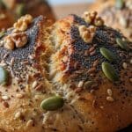 This Mixed Seeds & Nuts Sultana Bread Roll recipe features soft, fluffy rolls packed with nutritious seeds, nuts, and sweet sultanas. The dough is enriched with a water roux, giving it a tender crumb and a delightful texture. Perfect for breakfast or as a wholesome snack, these bread rolls are flavored naturally with dark brown sugar and enriched with butter and milk for a rich taste.