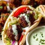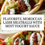 Delicious Moroccan Lamb Meatballs served with a fresh mint yogurt sauce, wrapped in warm pita bread and complemented by crisp lettuce, tomatoes, and onions. These flavorful meatballs combine aromatic spices like cumin, coriander, paprika, and cinnamon for a taste that transports you to North Africa.