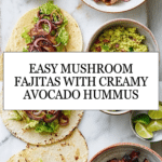 Keywords: Mushroom fajitas, avocado hummus, vegetarian fajitas, grilled mushrooms, healthy fajita recipe, Mexican-inspired vegetarian meal