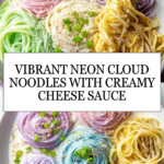 The Neon Noodle Cloud Dish is a visually striking and creamy pasta recipe featuring vibrantly colored noodles coated in a luscious cream cheese sauce. This playful and artistic dish combines the vibrant hues of food coloring with a decadent, parmesan-infused cloud-like sauce, garnished with scallions, toasted sesame seeds, and optional edible flowers or microgreens for an elegant finish. Perfect for those looking to add a pop of color and creativity to your dinner table, this recipe balances flavor and aesthetics effortlessly.