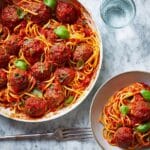 One-Pan Pasta with Meatballs, Tomatoes, and Basil Recipe