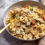 - Combine Chicken and Pasta: Return the cooked chicken to the pot and gently fold it into the creamy pasta mixture until evenly distributed and heated through.