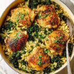 This one-pot garlicky chicken thighs with giant couscous is a comforting and flavorful dish perfect for a weeknight dinner. Tender chicken pairs beautifully with the hearty couscous and vibrant cavolo nero, all infused with garlic and fresh lemon. It’s simple to prepare and requires minimal cleanup.