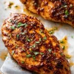 This oven-baked chicken breast recipe delivers tender, juicy chicken breasts with a flavorful seasoning blend of brown sugar, paprika, and herbs. Thanks to pounding the chicken to an even thickness and baking at a high temperature, the chicken cooks evenly and retains moisture, making it perfect for a quick and healthy meal. This simple recipe is ideal for weeknights and pairs wonderfully with sides like garlic butter rice and kale.