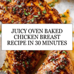 Keywords: oven baked chicken breast, baked chicken breast recipe, easy chicken breast, healthy chicken dinner, juicy baked chicken