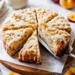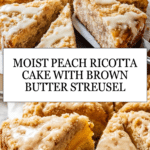 Delight in a moist and flavorful Peach Ricotta Cake topped with a nutty Brown Butter Streusel and a sweet honey glaze. This cake combines the creaminess of ricotta cheese with fresh chopped peaches and a crunchy, browned butter topping, making it a perfect dessert or afternoon treat.