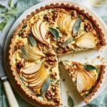 This Pear, Walnut & Blue Cheese Tart is a deliciously savory yet subtly sweet dish combining a crisp walnut-infused pastry with a rich filling of caramelized shallots, sage, chard, roasted pears, gorgonzola dolce, and crème fraîche. Baked to golden perfection, it offers an elegant balance of flavors and textures perfect for lunch, brunch, or a light dinner.
