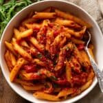 Store any leftover Penne all’Arrabbiata in an airtight container in the refrigerator for up to 3 days. When reheating, warm gently on the stove or in the microwave, adding a splash of water if the sauce has thickened too much.