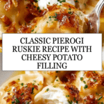Pierogi Ruskie are traditional Polish dumplings filled with a creamy mixture of potatoes and cheese. These comforting bites are topped with buttery onions and served with sour cream, making them a beloved dish perfect for family meals or special occasions.