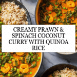 Keywords: prawn curry, coconut curry, quinoa rice, spinach curry, easy dinner, healthy seafood curry