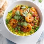 A vibrant and flavorful prawn, pea, and tomato curry made with aromatic spices, fresh ginger, and garlic, simmered to perfection and served with basmati rice or chapatis. This quick and easy stovetop curry combines the sweetness of peas and tomatoes with succulent prawns for a delicious and hearty meal.