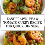 Keywords: prawn curry, pea curry, tomato curry, Indian prawn recipe, tikka masala curry, quick prawn curry, seafood curry