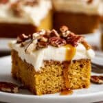 Keywords: Pumpkin cake, Cream cheese frosting, Autumn desserts, Spiced cake, Maple syrup, Pecan topping