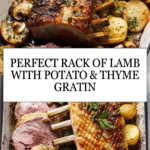 This rack of lamb with new potato, onion, and thyme gratin is a comforting and elegant dish perfect for a special dinner. Tender lamb pairs beautifully with creamy, herb-infused potatoes, making every bite full of flavor.