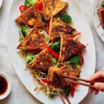 - Serve: Arrange the crispy tofu pieces on top of the stir-fried vegetables. Scatter with fresh coriander leaves and serve immediately for a delicious, crunchy meal.
