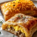 - Prepare Egg Filling: Scramble the eggs in a pan seasoned with your favorite seasoning blend. While still warm, optionally stir in shredded cheddar or Jack cheese. Remove from heat and cool slightly to avoid melting the pastry during assembly.