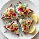 This Scandinavian-inspired smoked mackerel on rye is a fresh and flavorful open sandwich perfect for a light lunch or snack. It combines creamy, tangy, and smoky elements with crisp vegetables and fresh dill for a delightful bite every time.