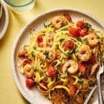 Store any leftovers in an airtight container in the refrigerator for up to 2 days. Reheat gently in a pan over low heat to avoid overcooking the prawns and drying out the pasta. It’s best enjoyed fresh.